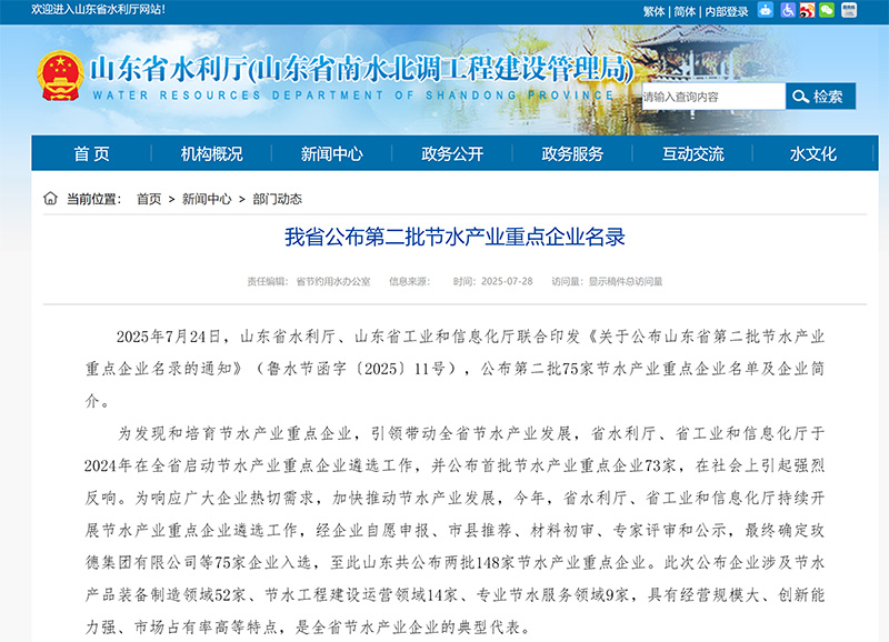 恭賀我司通過山東省第二批節(jié)水產(chǎn)業(yè)重點企業(yè)